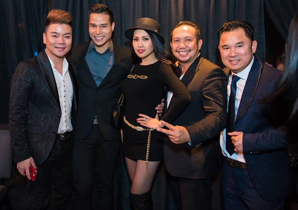 Nam vương Ngô Tiến Đoàn (thứ hai từ trái qua) vui vẻ chụp ảnh cùng ‘gái nhảy’ và các khán giả gốc Việt. Tháng 12 tới, Minh Thư định trở lại Việt Nam để ra mắt MV và làm giám khảo cuộc thi Gương mặt sân khấu điện ảnh triển vọng 2016.