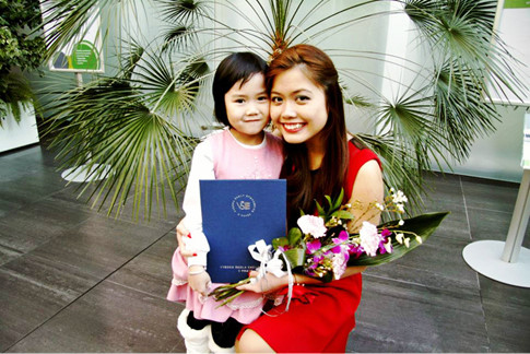 Thu Hương và em gái trong lễ tốt nghiệp ĐH tại trường Kinh tế Praha, Cộng hòa Czech