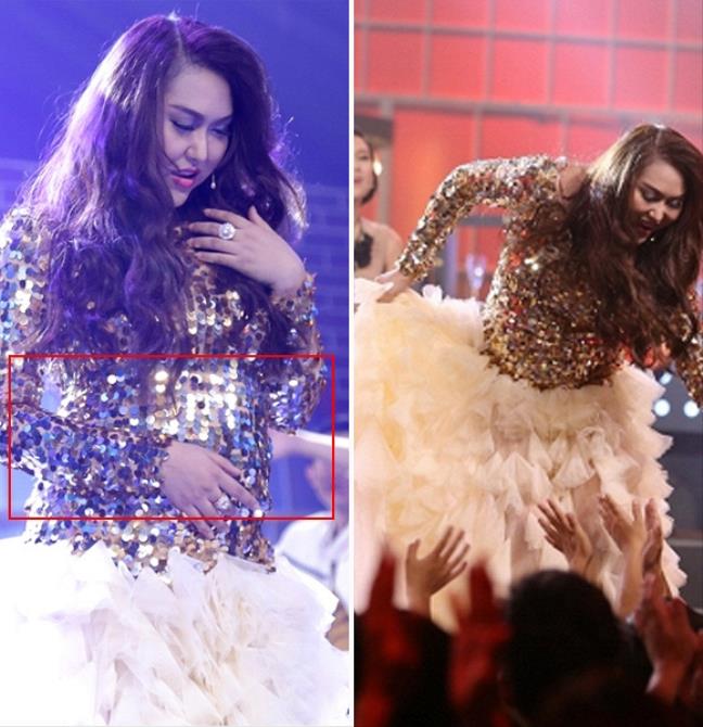 "Hốt hoảng" khi Phi Thanh Vân diện trang phục lóng lánh kết hợp bèo nhún nhiều tầng để lộ vòng hai đẫy đà.