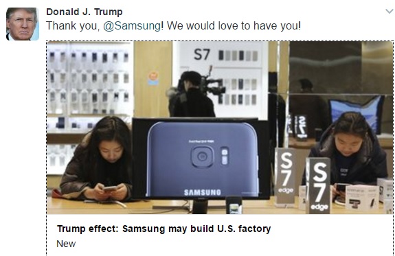 Không những thế hãng cũng lên kế hoạch sản xuất điện thoại di động tại Mỹ nếu điều kiện cho phép. Hiện nay Samsung có nhà máy sản xuất tại Việt Nam.