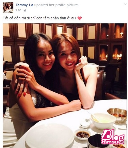 Trên trang cá nhân của Tammy Lê vừa đăng một bức ảnh bên cạnh Ngọc Trinh, cùng với dòng trạng thái: “Tất cả đến rồi đi chỉ còn tấm chân tình ở lại!” và chắc chắn ai cũng đoán được người đẹp này đang đề cập đến chuyện gì. Có thể nói tình yêu của Ngọc Trinh đến rồi đi như một cơn gió, chỉ có tình bạn chân thành là bền vững và trường tồn mãi mãi.