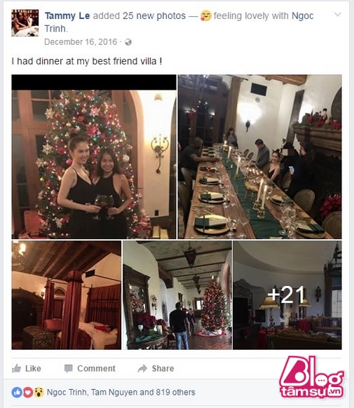 Cô còn tự hào khoe là ăn tối tại biệt thự của ‘bạn thân’