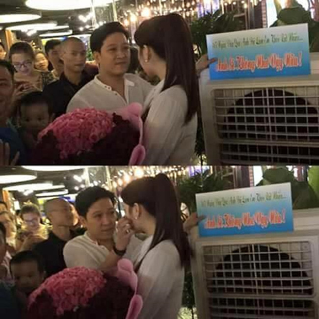 Trường Giang và Nhã Phương rất ít khi công khai nói về nhau. Nhưng lần nào xuất hiện cạnh nhau, "Mười Khó" không ngại thể hiện tình cảm với bạn gái mình.
