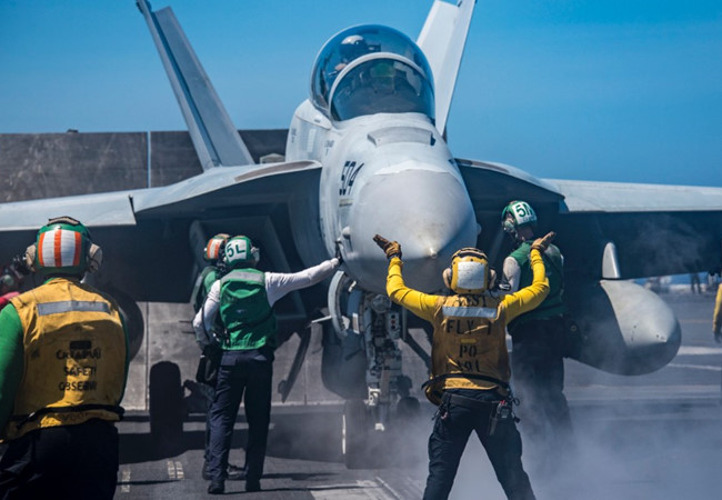 Chiến đấu cơ chuẩn bị xuất kích trên tàu sân bay USS Carl Vinson của Mỹ