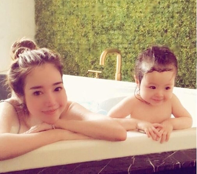 Phi Thanh Vân cũng từng "đốt mắt" người xem khi mặc hở bạo, tạo dáng cùng con trai đầu lòng trong bồn tắm.
