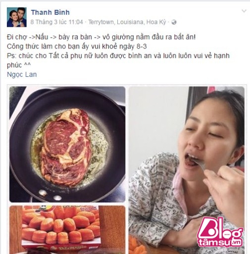 Mà Ngọc Lan còn khiến chị em ghen tị vì có chồng luôn ở bên chăm sóc đến tận răng.