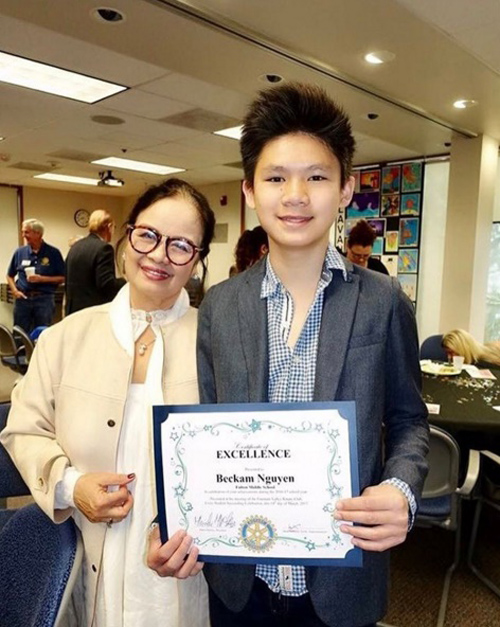 Bằng Phương hay Beckam là con trai cả của Trizzie Phương Trinh và Bằng Kiều. Mới đây trên trang cá nhân của cả hai nghệ sỹ đều đăng tải hình ảnh Beckam vượt qua hàng nghìn học sinh để đạt một giải thưởng đặc biệt tại Mỹ.