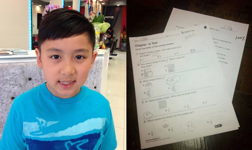 Không thua kém anh trai, cậu con thứ hai của Bằng Kiều - Bằng Anh hay còn được gọi là Colin cũng học rất giỏi. Cách đây không lâu Trizzie Phương Trinh cũng chụp bức hình bài kiểm tra của Bằng Anh đạt điểm 100% tuyệt đối.