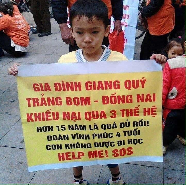 Thành viên nhỏ của một gia đình dân oan ở Đồng Nai ra Hà Nội khiếu kiện đất đai