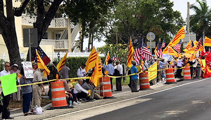 Bắt đầu từ 10 giờ, đoàn biểu tình với một khí thế hăng say khởi sự tuần hành trên đại lộ Southern Boulevard hướng về khu Mar-a-Lago là nơi Tổng Thống Donald Trump và Chủ Tịch Tập Cận Bình gặp nhau. Ngoài cộng đồng Việt Nam còn có khoảng 200 người của nhóm Pháp Luân Công và một số người Tây Tạng cũng tham gia biểu tình chống Tập Cận Bình.