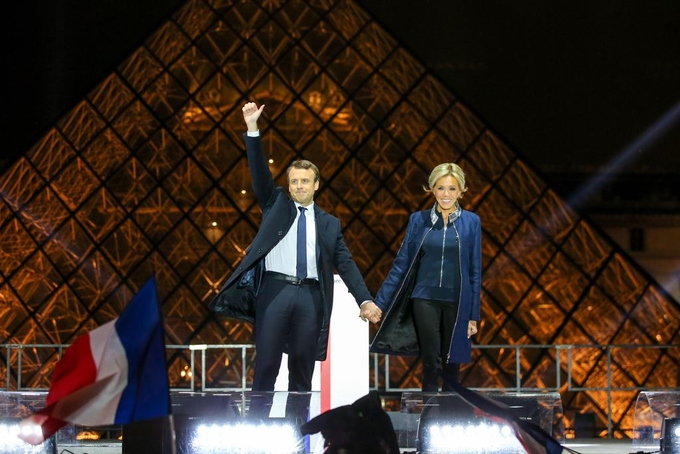 Brigitte là tín đồ của Louis Vuitton. Trong ngày chiến thắng của chồng hôm 7/5, Brigitte gây ấn tượng với cả bộ cánh của Louis Vuitton nằm trong bộ sưu tập Thu Đông 2016.