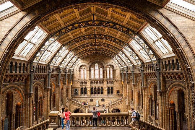 Đại sảnh chính của Bảo tàng Lịch sử Tự nhiên nhìn từ trên cao: đây chỉ là một trong rất nhiều những điểm thăm quan miễn phí của London