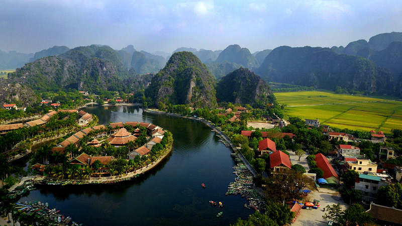 Tam Cốc - Bích Động được ví như Vịnh Hạ Long trên cạn với hệ thống hang động, núi đá vôi, những cánh đồng lúa nước tuyệt đẹp.