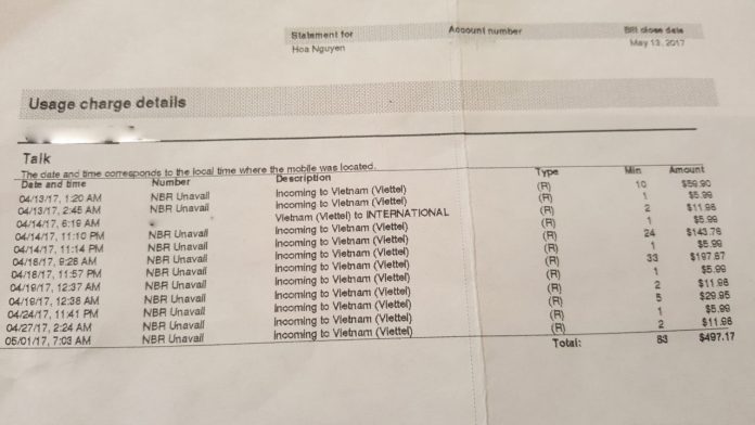 Chỉ đến khi nhận hóa đơn điện thoại tháng này, ông Hòa mới “tá hỏa” khi thấy “trung bình mỗi tháng tôi trả $175 cho T-mobile, nhưng ‘bill’ tháng này lên đến hơn $700.”