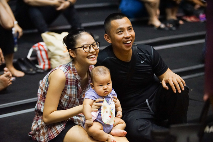 Trước đó, chiều muộn ngày 7/6, Khánh Linh - bà xã Chí Anh có mặt tại buổi tổng duyệt liveshow kỷ niệm 25 năm làm nghề của Khánh Thi ở Cung thể thao Quần Ngựa. Cô mang theo cả con gái Kiwi để cổ vũ tinh thần cho ông xã trên sàn tập. Bé Kiwi nhà Chí Anh - Khánh Linh mới hơn 5 tháng tuổi, trông rất bụ bẫm và có nhiều nét giống bố.