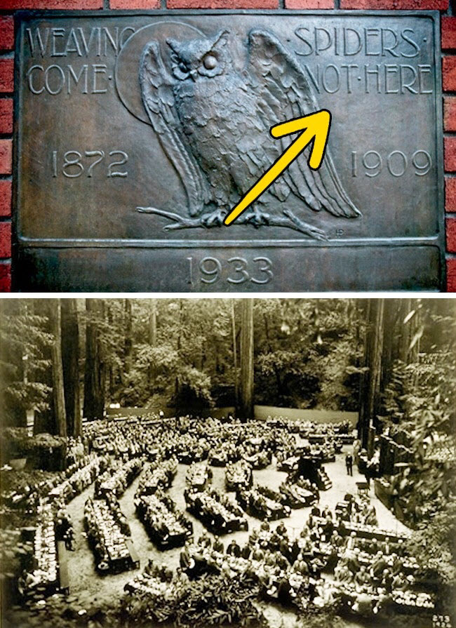Đây là một câu lạc bộ bí ẩn nằm trong khu rừng cổ xưa ở bang California, Mỹ. Hằng năm từ 1899, những người có tầm ảnh hưởng nhất thế giới, bao gồm các tổng thống Mỹ, tập trung tại đây. Mục tiêu của câu lạc bộ này là không bàn công việc, nhưng dự án chế tạo bom nguyên tử Manhattan Project được cho là ký kết tại đây vào năm 1942.