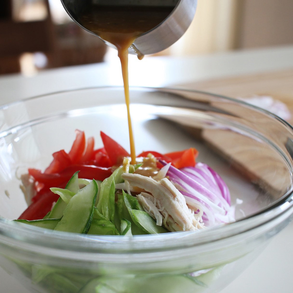 Làm nộm gà xé phay dưa chuột: Hương vị của mù tạt khiến mũi bạn có chút nhăn nhó nhưng lại tạo nên sức hấp dẫn đặc biệt cho món nộm gà dưa chuột. Ức gà thấm vị, đậm đà hài hòa vị chua ngọt và rau củ tươi giòn sẽ là một món ăn giải ngán tốt cho bữa ăn nhiều chất đạm. Nó cũng có thể là món ăn khai vị hay một món ăn phụ giữa bữa rất lành mạnh. Chị em giảm cân cũng nhớ thêm nộm gà dưa chuột vào thực đơn nhé, không làm tăng cân lại giúp bổ sung năng lượng và đẹp da đấy.
