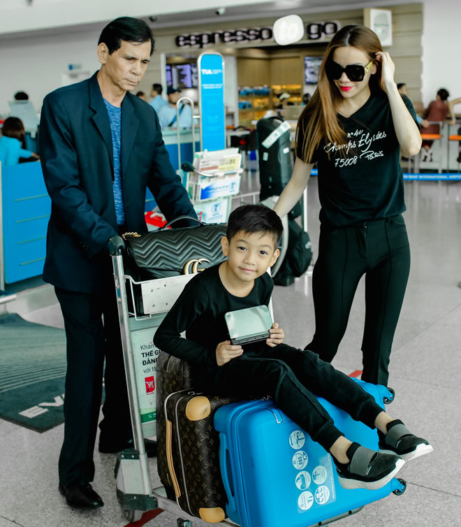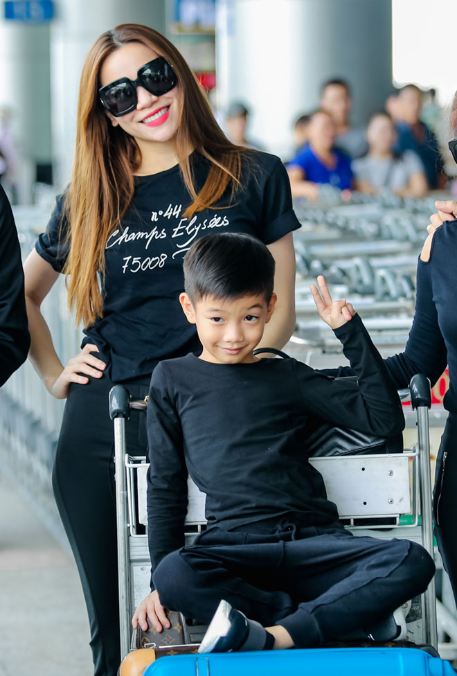 Ngay từ khi xuất hiện tại sân bay, hai mẹ con Hà Hồ đã thu hút khá nhiều sự chú ý khi diện nguyên “cây đen” tông xuyệt tông.