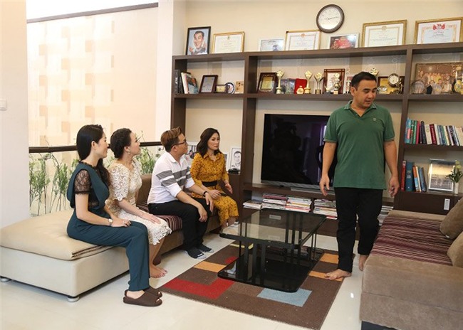 Ngay khi bước vào phòng khách, các nghệ sĩ không ngớt trầm trồ vì dinh thự tráng lệ nhưng cũng rất ấm cúng của vợ chồng MC Quyền Linh. Từ phòng khách cho tới phòng ngủ, phòng ăn và bếp đều được vợ chồng MC Quyền Linh chăm chút và trang trí tỉ mỉ. Đặc biệt là anh dành hẳn một góc không gian của căn biệt thư để trưng bày những thành quả mình đã đạt được trong nghệ thuật như bằng khen, cúp...