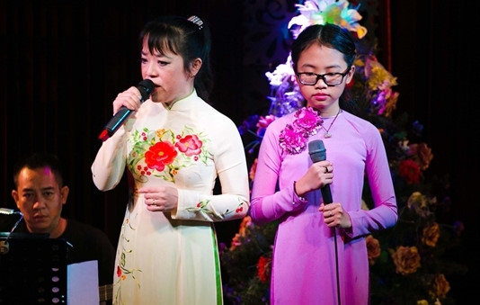 Phương Mỹ Chi và cô út trong một buổi diễn tại phòng trà.