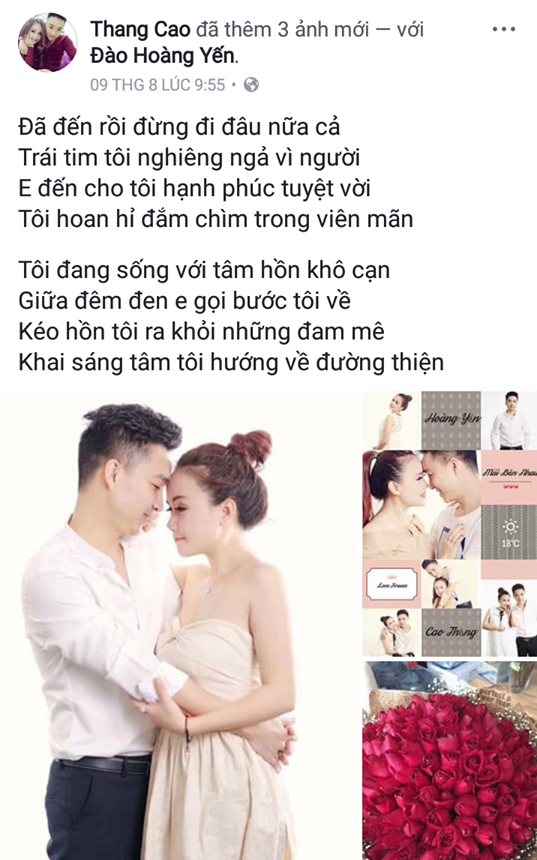 Dòng trạng thái vô cùng ngọt ngào và lãng mạn được ông xã của Hoàng Yến chia sẻ gần đây trên trang cá nhân.