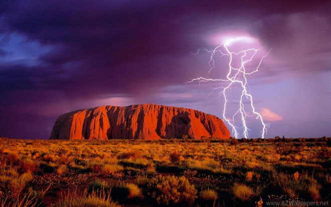 Uluru là núi đá sa thạch thiêng liêng nằm trong Vườn Quốc gia Uluru-Kata Tjuta, cao tới 348 mét với chu vi 9,4 km, nổi tiếng với sắc thái ánh sáng bao trùm lên đó lúc bình minh và hoàng hôn.