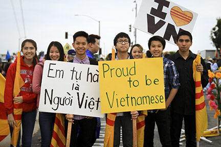 Các học sinh lớp Việt Ngữ Trường Trung Học Garden Grove tham gia Diễn Hành Tết 2015. (H́nh cung cấp)