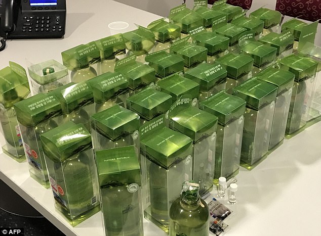 Đến khi kiểm tra hành lý, các nhân viên Úc tìm thấy 36 chai màu xanh lá cây được dán nhãn là nước soda. Nhưng cuộc xét nghiệm cho kết quả dương tính đối với chất methamphetamine.