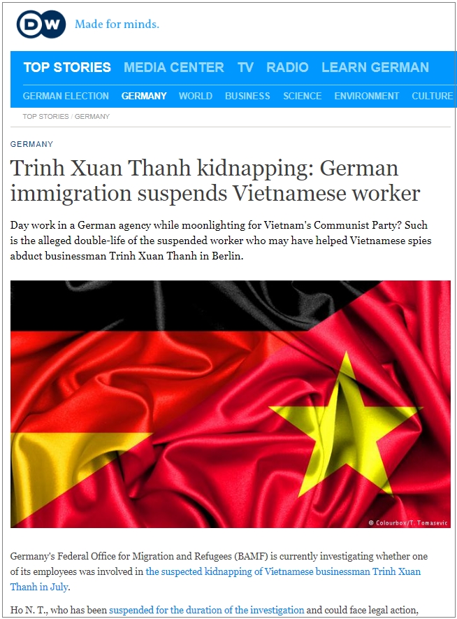 Một bài báo của Đài Deutsche Welle (Làn sóng Đức) ngày 22.08.2017 còn ghi rõ: