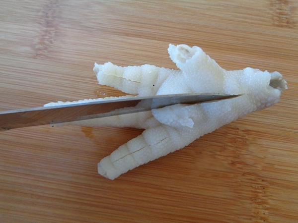 - Bước 2: Dùng dao khứa trên từng ngón chân gà.