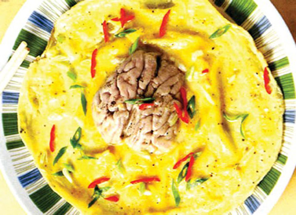 22. Óc lợn và trứng gà: Tuy món óc lợn tráng trứng rất hấp dẫn nhưng dùng trứng chung với óc lợn sẽ làm tăng cholesterol trong máu. Vì vậy, không nên ăn nhiều món này nhất là những người huyết áp cao.