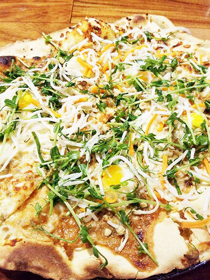 Bánh pizza hương vị Thái Lan "Farm Thai Pie" của Jimmy nhìn hao hao chiếc bánh xèo, có màu vàng của nghệ, có những lát lạp xưởng được xắt thật mỏng, được rưới tương ngọt lên trên, và cuối cùng là lớp dưa giá “Yum Yum Mix” có dấu ấn Jimmy. Chưa hết, anh còn xếp sáu quả trứng cút lên từng chiếc bánh pizza nữa. Gian hàng bán thức ăn của Jimmy lúc nào cũng đông khách, và anh sẽ phục vụ bánh pizza "Farm Thai Pie" cho tới cuối tháng Chín.