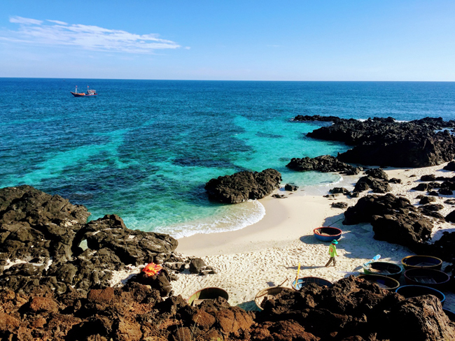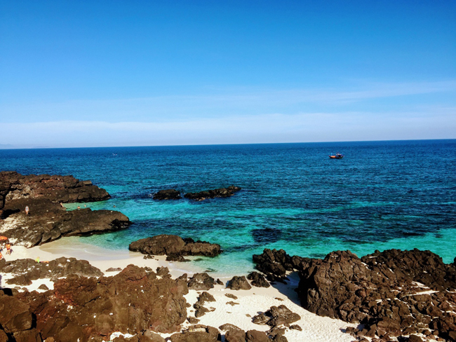 Bãi biển tuyệt đẹp với cát trắng, biển xanh, nước biển trong vắt nhìn thấu đáy là những gì bạn sẽ nhận thấy ở Đảo Bé – thuộc huyện đảo Lý Sơn Việt Nam.