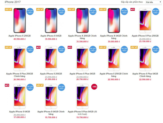 Tới thời điểm hiện tại, các cửa hàng ở Hà Nội và TP HCM đưa giá khởi điểm iPhone 8 xuống chỉ còn hơn 17 triệu đồng đối với bản 64GB màu vàng và ghi, thấp hơn tới 2 triệu đồng so với một tuần trước. Mức giá này đúng bằng đúng mức giá của iPhone 7 Plus 128 GB.