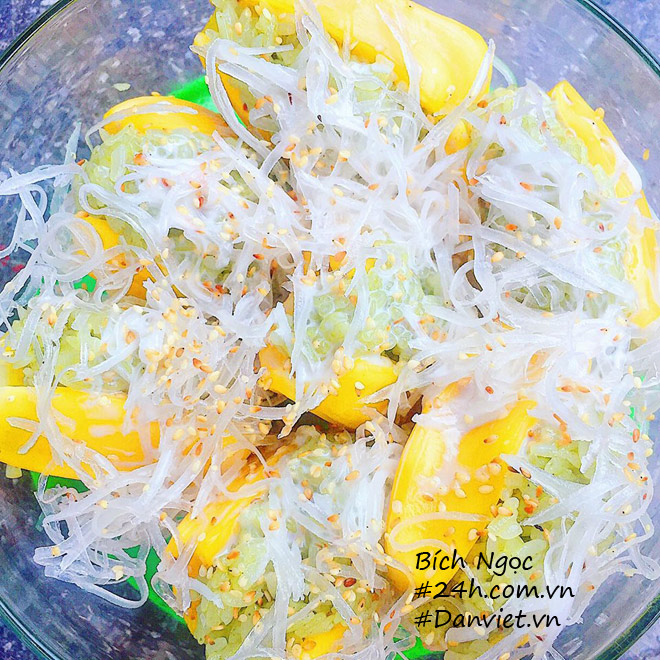 - Múc từng thìa xôi nắn lại thành từng phần vừa với múi mít rồi cho vào, xếp ra đĩa. Sau đó rắc dừa sên, vừng rang lên trên.- Rưới thêm chút nước cốt dừa là bạn đã hoàn tất món xôi mít lá dứa rồi.