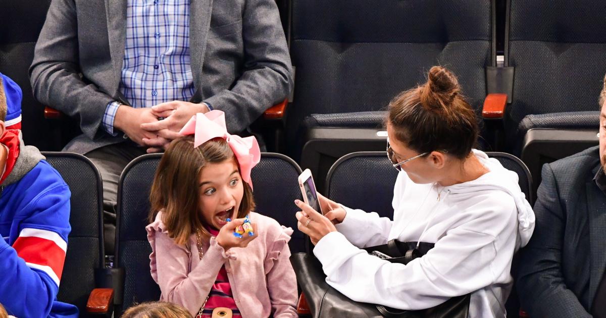Cuối tuần qua, Suri Cruise đã được mẹ đưa đi xem một trận đấu khúc côn cầu trên băng tại New York. Cô con gái 11 tuổi của Tom Cruise và Katie Holmes trông rất đáng yêu với một chiếc nơ to cài trên tóc. Trong lúc theo dõi trận đấu, Suri còn tươi cười dễ thương khi chụp ảnh selfie cùng mẹ. Thật khó có thể nhận ra đây là cô tiểu thư sang chảnh ngày nào của Tom Cruise, lúc nào cũng cau có và khó chịu trước ống kính.