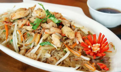 VBF-Món miến xào bản thân đã rất ngon, nhưng nếu biết cách chế biến thêm với cua bể thì càng thêm phần tăng khẩu vị. Miến xào là món ăn rất ít người ăn, nhưng lại dễ gây nghiện. Món ăn có thêm cà rốt, hành , mộc nhĩ...