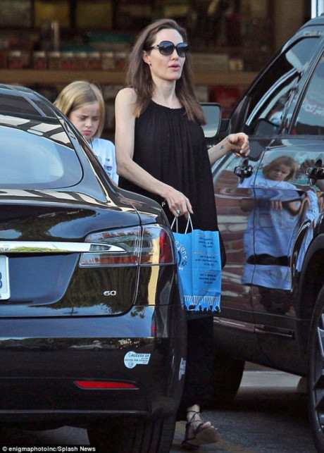 Mới đây, phóng viên bắt gặp Angelina Jolie đưa con gái út Vivienne đi mua sắm. Lựa chọn trang phục đầm maxi đen cùng phụ kiện kính mắt thời trang, bà mẹ 6 con trông rất rạng rỡ. Kiểu trang điểm môi hồng phớt giúp cô trở nên trẻ trung và duyên dáng hơn. Đây là lần đầu tiên Angelina xuất hiện ở chốn công cộng sau khi thừa nhận từng bị "ông trùm Hollywood" quấy rối trong quá khứ.