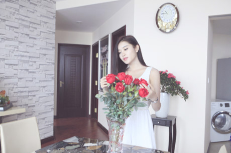 Huyền My thường xuyên mua hoa để trang hoàng căn nhà của gia đình.
