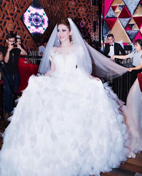 VBF-Lâm Chí Khanh sẽ là nghệ sĩ xài sang nhất trong đám cưới?Cô nói sẽ thay 8 đầm cưới và những đầm cưới đều được đính pha lê. Riêng về việc nhà trai cũng rất ủng hộ đám cưới.