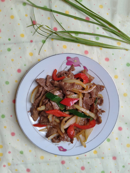 - Hành tây bóc vỏ thái lát, ớt chuông thái lát, tỏi tây thái khúc.