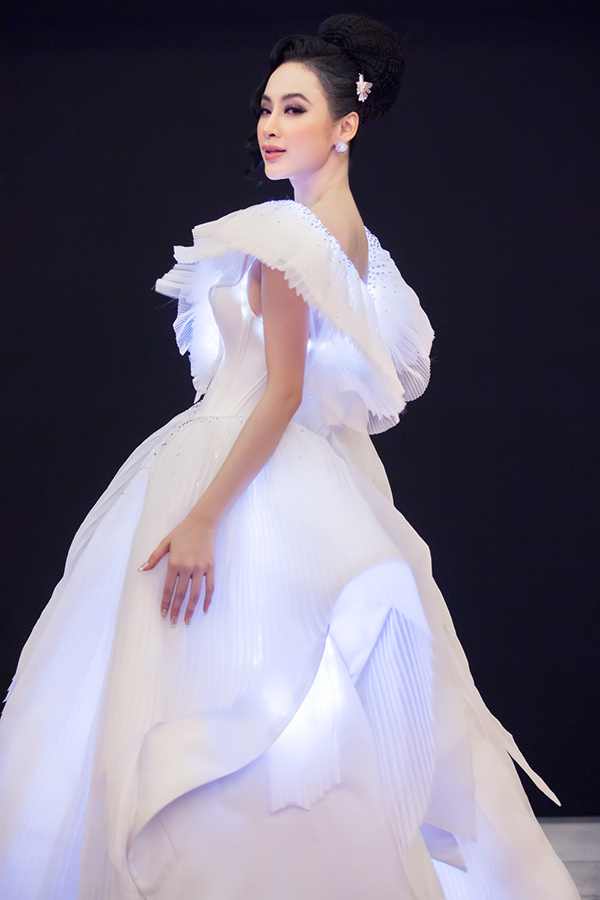Chiếc váy trắng của Angela Phương trinh do nhà thiết kế Tiến Truyển thực hiện.