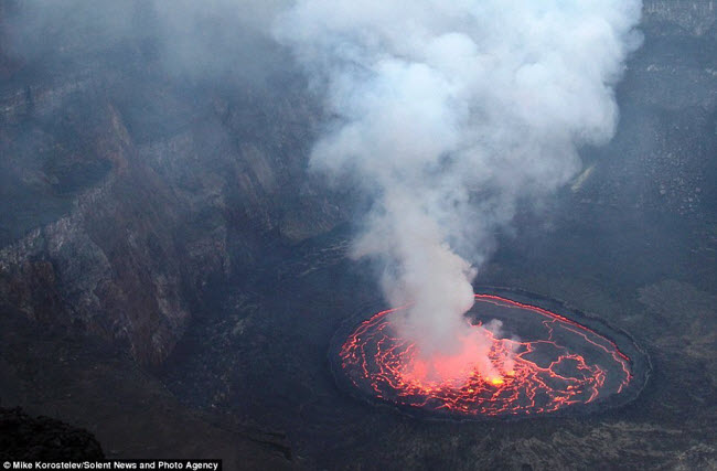 Nằm trong vườn quốc gia Virunga ở Congo, núi lửa Nyiragongo nổi tiếng với hồ dung nham lớn nhất thế giới.