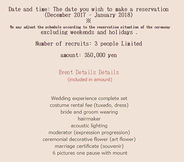 Các "chú rể" có thể mang giấy đăng ký kết hôn về nhà để làm kỷ niệm vì nó không có hiệu lực về mặt pháp lý. Ngoài ra, họ còn được sở hữu 6 bức ảnh cưới chụp với ngôi sao phim người lớn.