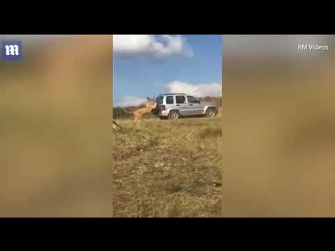 Trong chuyến thăm quan công viên động vật hoang dã, du khách đã có một trải nghiệm khó quên. Chú sư tử đã lưu luyến và không muốn họ rời bước. Nó đã bám vào xe để mặc bị lê dài trên đường.