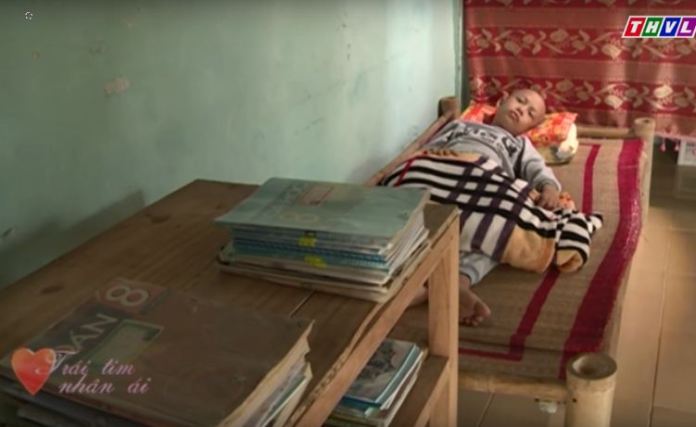 Em Tô Thiên Phú, bị ung thư tinh hoàn, được nhắc đến trong chương trình “Trái Tim Nhân Ái” của đài truyền hình Vĩnh Long. (Hình chụp từ màn hình TV)