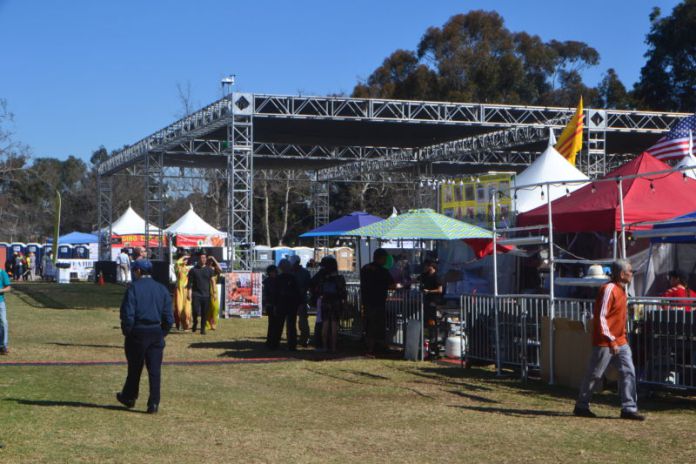 Hội chợ Tết ở Mile Square Park lúc còn chưa nhiều người đến. (Hình: Thiện Lê/NV)