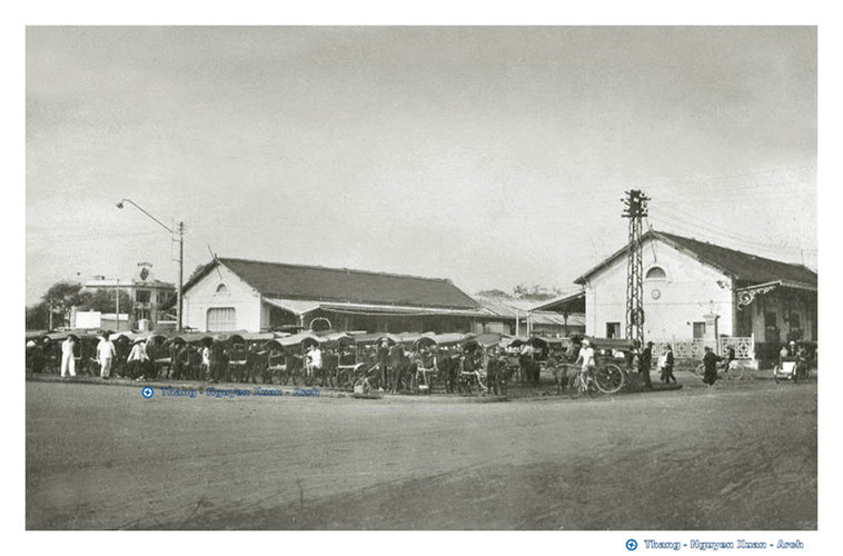 Khu vực chợ Bến Thành thập niên 1920. Ga Sài Gòn thời điểm này nằm ở phía trái, cạnh bùng binh chợ Bến Thành. Trước đó, trong giai đoạn 1885 - 1915, ga nằm ở bờ sông Sài Gòn, phía cuối đường Hàm Nghi. Ảnh tư liệu.