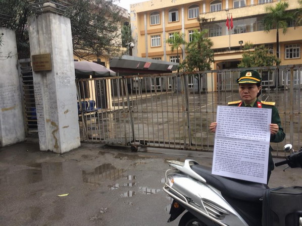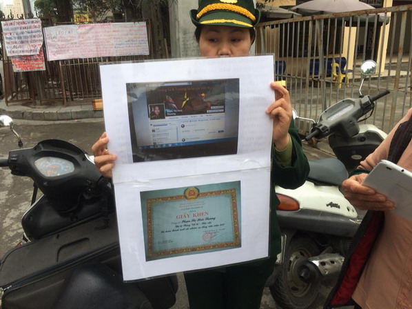 Đại uý Phạm Thị Hoài Thương - nhân viên cục điều tra hình sự - Bộ Quốc Phòng. Đang kêu oan trước trụ sở tiếp công dân TW số 1 - NgôThì Nhậm- Quang Trung- Hà Đông- Hà Nội.