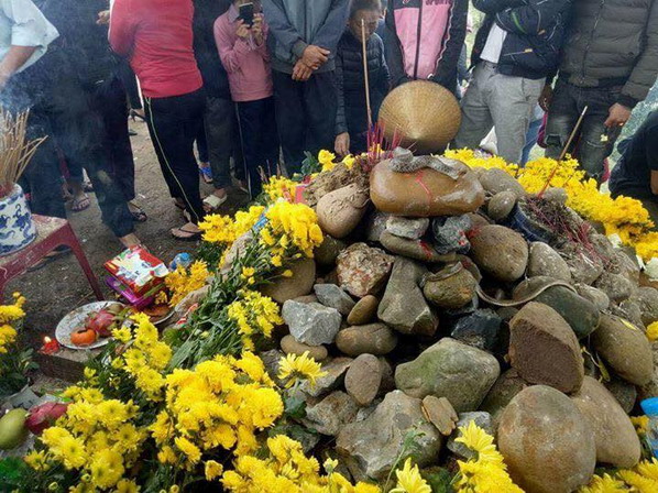 +Lãnh đạo xã Quảng Văn cho hay, chỗ 2 con rắn nước ở là mộ của một bà ăn mày qua đời hồi Pháp thuộc. Bà không thân thích họ hàng. Mất cô quạnh. Dân làng La Hà chôn cất, đắp nấm mộ nhỏ. Sau này dân đi qua thấy tội, mộ cạnh đường đi người ta lại nhặt viên cuội đủ cỡ to nhỏ sắp vào cái mộ hiu quạnh cho có nấm.